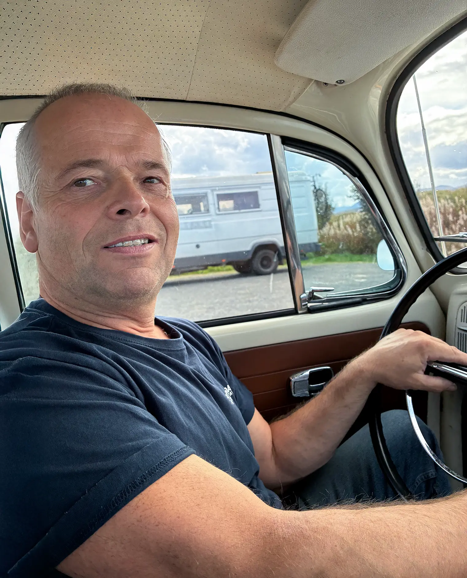 ↑ ASTMA-HELBREDET: Arne Hustad tok en kjøretur i sin gamle Volkswagen Boble på kvelden den 27. august i år. Samme kveld opplevde han å bli helbredet fra astma gjennom forbønn i Telekirken.